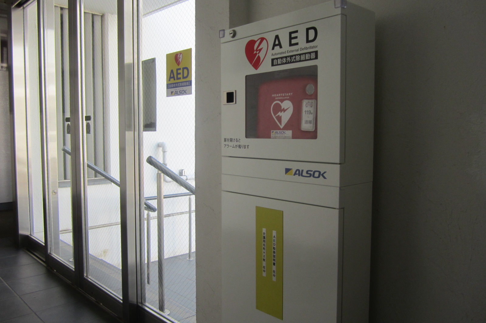● 当マンションは、どなたでも使えるAEDを玄関に備え付けています。